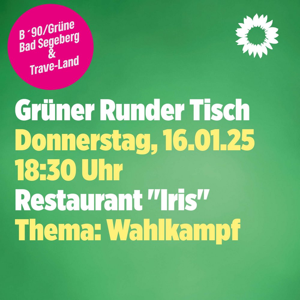 Es ist mal wieder Zeit für unseren Grünen Runden Tisch!🤗💚 Er findet statt im Restaurant Iris in der Lübecker Straße 12a im 1.Stock.