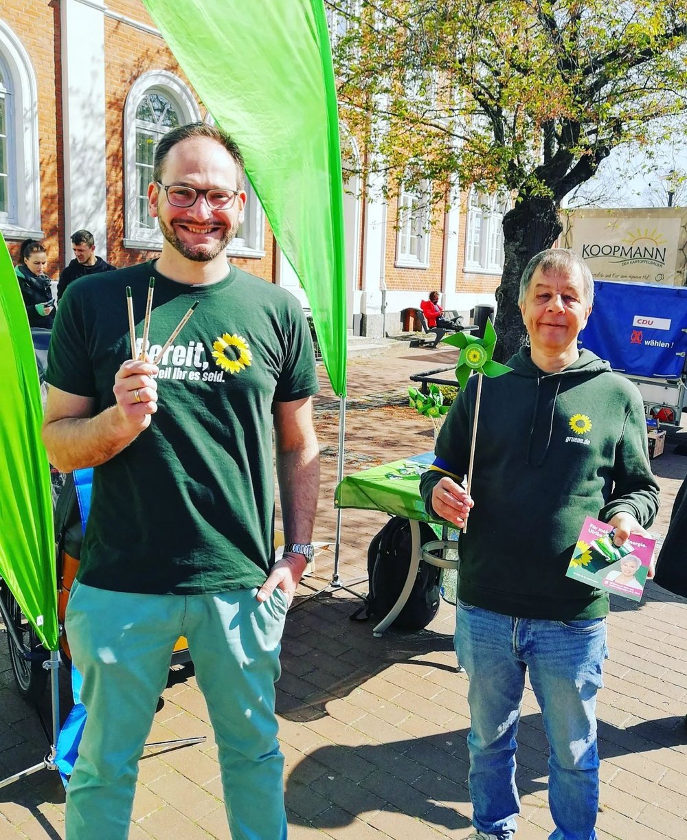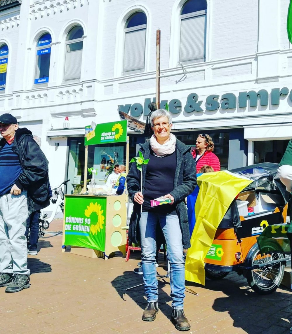 Samstag, 15 Tage vor der Landtagswahl, bedeutet für uns Bad Segeberger Grüne wieder: Reichlich motivierte Action in der Innenstadt am Markt!